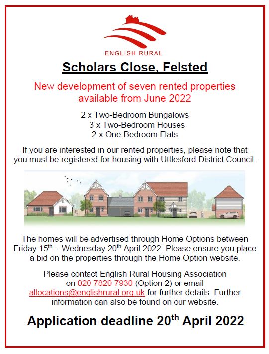 New Development of Seven Rented Homes Available in Felsted – Available June 2022 by Felsted Parish Council | Apr 6, 2022 | news *********************************************************************************